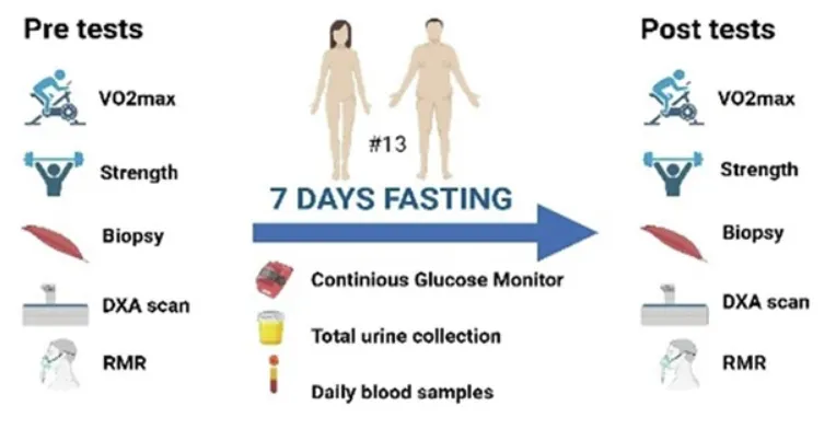 มันมีการศึกษานึงตีพิมพ์ในวารสาร NATURE ที่จะทำให้เรารู้จักร่างกายของเรามากขึ้น โดยเป็นการจำลองสถาณการณ์ที่เราไม่สามารถหาอาหารได้เป็นระยะเวลา 7 วัน แล้วดูว่าจะเกิดอะไรขึ้นบ้างในแง่ของพละกำลังและระบบเผาผลาญ เพื่อที่จะหาคำตอบว่าเราจะยังมีเรี่ยวแรงอยู่ไหมหากไม่สามารถหาอะไรทานได้เลยเป็นระยะเวลา 7 วัน
