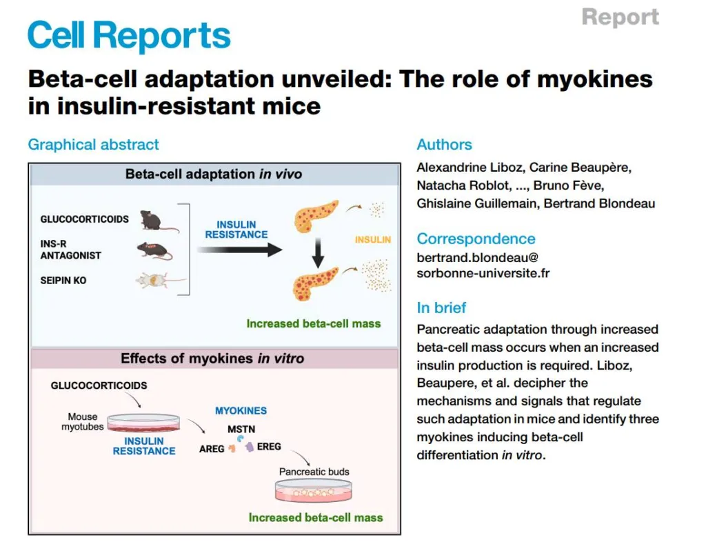 - Beta-cell adaptation unveiled: The role of myokines in insulin-resistant miceLiboz, Alexandrine et al.Cell Reports, Volume 44, Issue 9, 116283