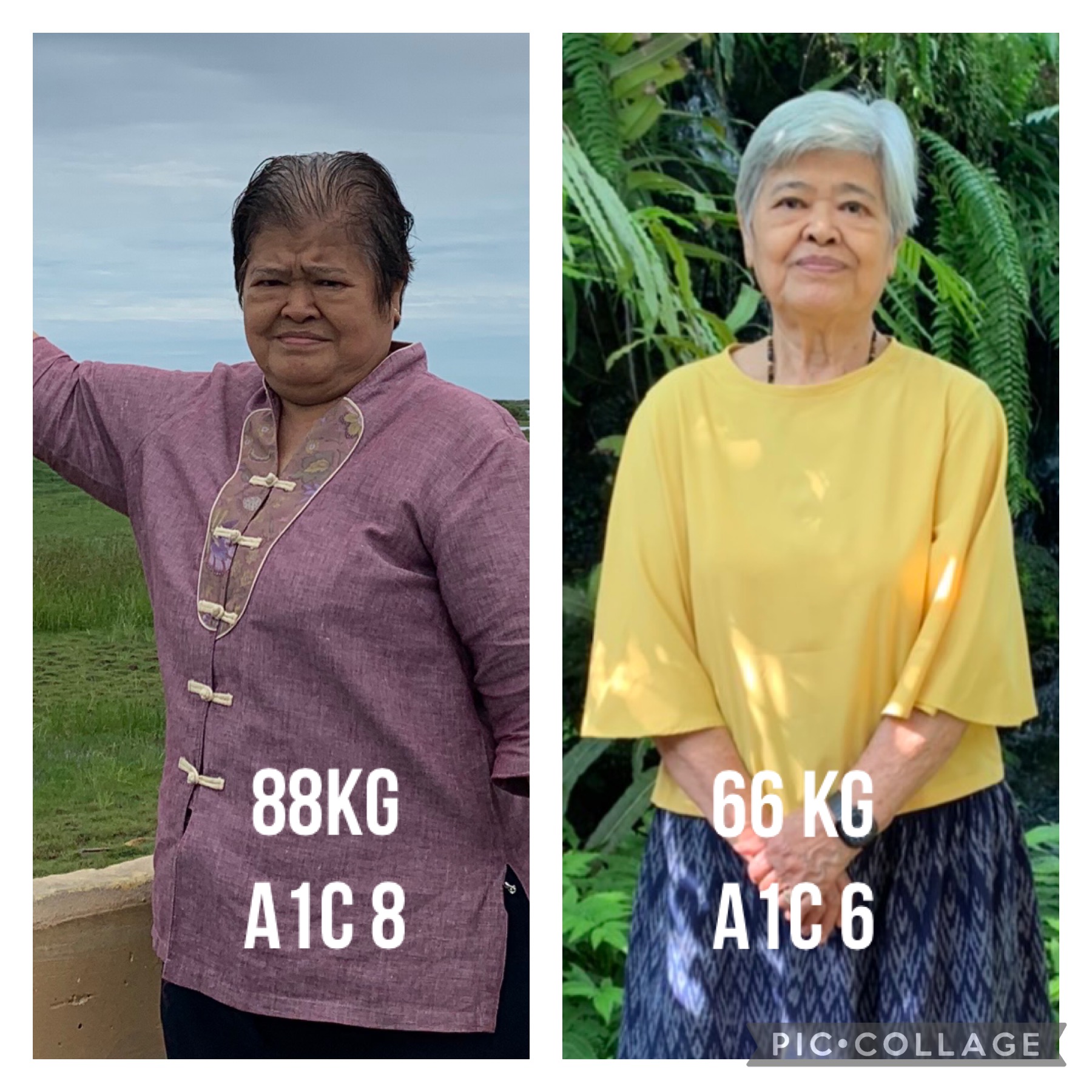 ก่อนหน้านี้มีปัญหาอ้วนมาก เบาหวานน้ำตาลสะสม 8 ทั้งทานยาทั้งฉีดยาหลายชนิดมาก ค่าไตก็ไม่ดี ลำบากในการใช้ชีวิตมาก รู้สึกเหมือนตายทั้งเป็นแต่พอได้เจอคุณหมอได้ปฎิบัติตามคำรู้สึกเหมือนตายทั้งเป็น แต่พอได้เจอคุณหมอได้ปฎิบัติตามคำแนะนำของคุณหมอก็เหมือนได้ชีวิตใหม่เบาหวานหายเป็นปกติ สามารถทานอาหารได้ใกล้เคียงกับคนปกติโดยที่ระดับน้ำตาลสะสมไม่ขึ้นไม่ต้องกินยาไม่ต้องฉีดยาแล้ว ทุกวันนี้เดินทางไปไหนมาไหนได้สบายมากค่ะ